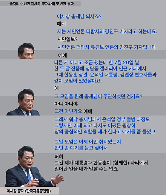 이세창 전 자유총연맹총재권한대행과 한동훈 윤석열 그리고 김앤장 대가리 30여명이 술을 쳐드셨고. 전광훈씨의 재개발 보상금 500억. 더탐사는 열린공감tv 출신 인물들이 개설한 유튜브 채널이다.